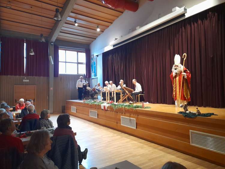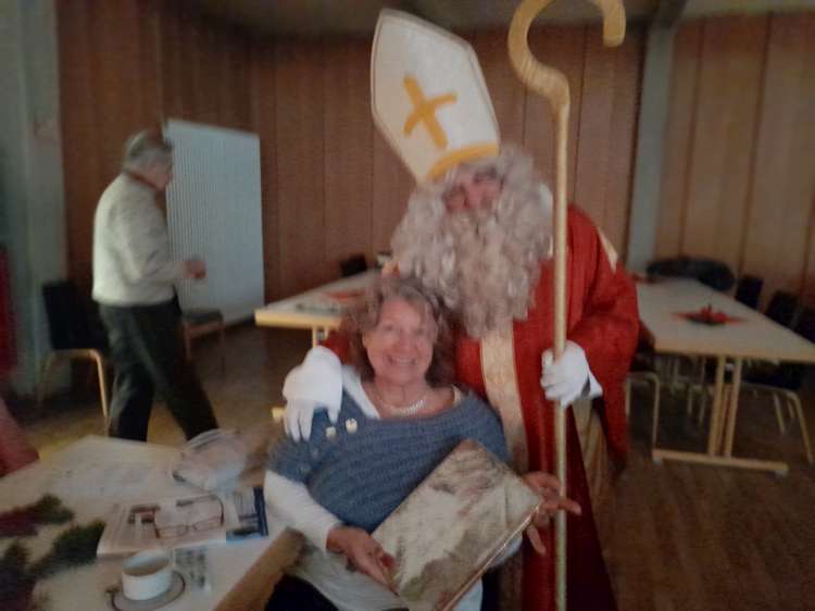 Höhepunkt war natürlich der Besuch des Hl. Nikolaus, der seinem „Goldenen Buch“ nur Positives aus dem Leben der Senioren entnahm. Nach einem gemeinsamen Lied machte der „Heilige“ – hinter dem sich der allgemein beliebte Reinhard Joos verbarg – die Runde im Saal, hatte für jeden ein gutes Wort und Mitbringsel aus seinem großen Sack.
