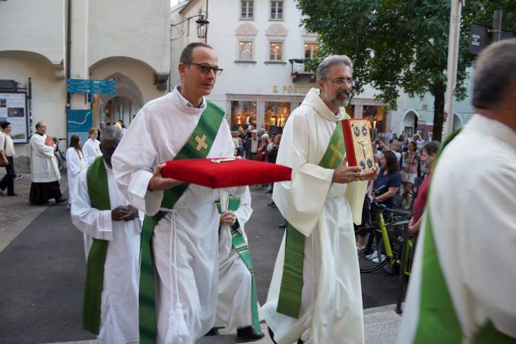 „Ein herzliches Vergelt’s Gott gilt allen, die diese wunderschöne Messfeier ermöglicht und mitgestaltet haben – allen voran unserem Bischof Ivo Muser, Bischofssekretär Michael Horrer, den Mitzelebranten, den Diakonen, Lektoren und Ministranten.