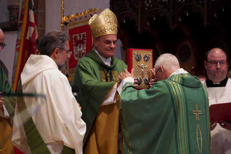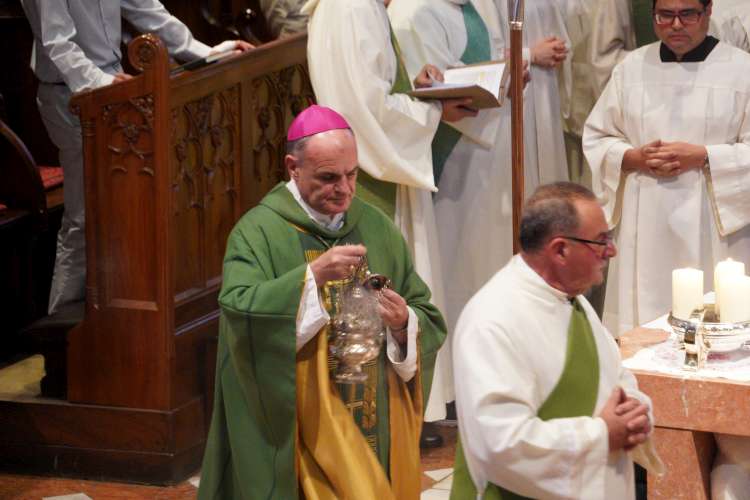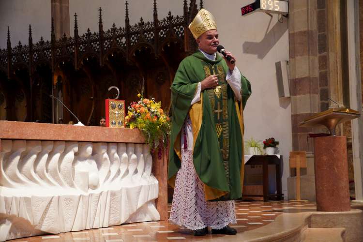 Am Beginn seiner Homilie ging der Bischof auf Aussagen der „Platzbesetzung“ und auf das damit verbundene Gleichnis von Jesus im Lukas-Evangelium ein.” Wer sitzt wo? Wem steht ein bestimmter Platz zu? Können diese Fragen nicht geklärt werden, sind sehr schnell Streit und Neid die Folge.  Daher war die Schlüsselübergabe an Don Mario das erste wichtige Zeichen seiner Autorität und Kompetenz als neuer Dekan und Pfarrer. Diesen Schlüssel verwendet er nun, um Zugang zu finden zu seinen Pfarrgemeinden und den Gläubigen der Stadt Meran.” Zudem betonte er die Tatsache, dass nun ein junger Dekan (54) mit großer Erfahrung sein verantwortungsvolles Amt antritt. Zu Gute kommen dabei werden dem gebürtigen Meraner seine deutschen und italienischen Wurzeln – denn – so der Bischof: „Das Zusammenleben der Sprachgruppen ist nicht nur eine Herausforderung – sondern unsere Bestimmung!“