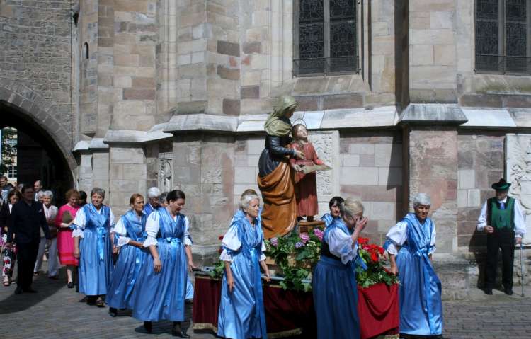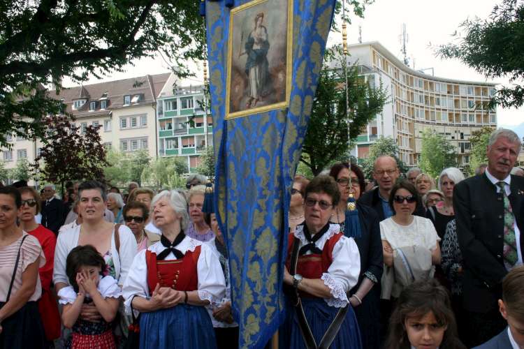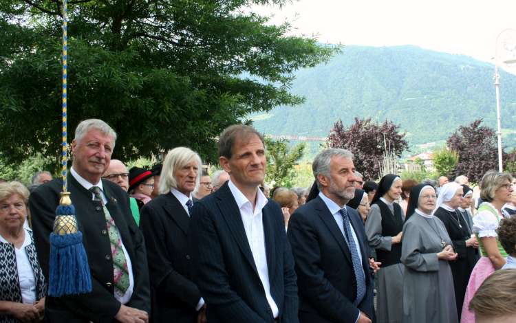 Bei der anschließenden Prozession unter Beteiligung vieler Gläubiger und Meraner-Vereinen trugen die Meraner Schützen die “Christus Statue des Herz Jesu”, die Frauen der Stadtpfarre St. Nikolaus die Heilige Anna, die Frauen der Pfarre Maria Himmelfahrt die Heilige Muttergottes, der KVW die Heilige Rosenkranzmuttergottes und die Zenoberger die Statue des Heiligen Urban.