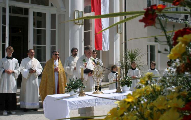 Vor der Stadtpfarrkirche spendete Dekan Hans Pamer den Gläubigen den Eucharistischen Segen.