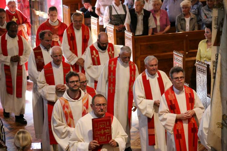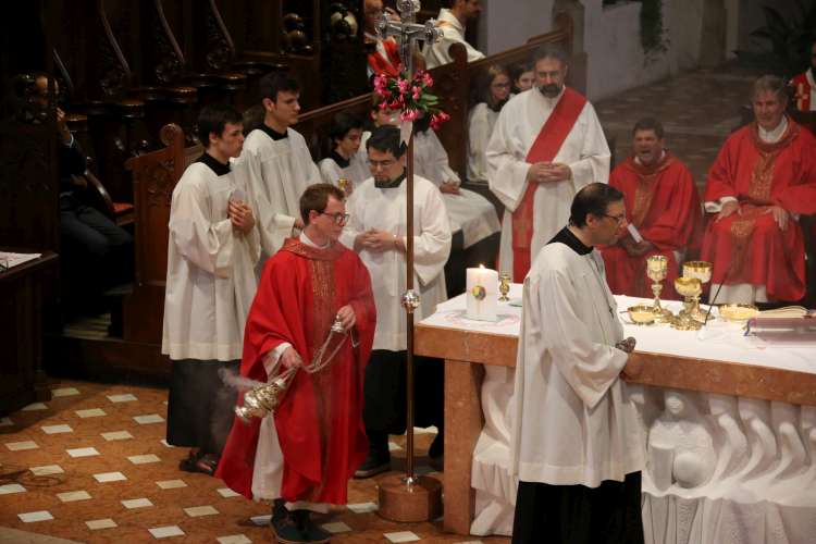 Und so war es nur eine Frage der Zeit, dass er sich auch in der Pfarrgemeinde St. Nikolaus einbrachte. Dadurch entstand eine tiefe Verbundenheit, die Peter Kocévar zum Anlass nahm, seine Primiz in diesem wunderschönen Gotteshaus zu feiern. Am Hochfest der Heiligen Apostel Peter und Paul am Freitag, den 29. Juni 2018 war es dann soweit: in Begleitung zahlreicher Priester, Diakone und einer Ministrantenschar zog der Primiziant Peter in die Stadtpfarrkirche St. Nikolaus ein. Die Festtagsfreude war ihm deutlich anzusehen. Auch Stadtdekan Hans Pamer konnte seine Begeisterung über den neuen Gottesdiener nicht verbergen und strahlte mit dem Primizianten um die Wette…