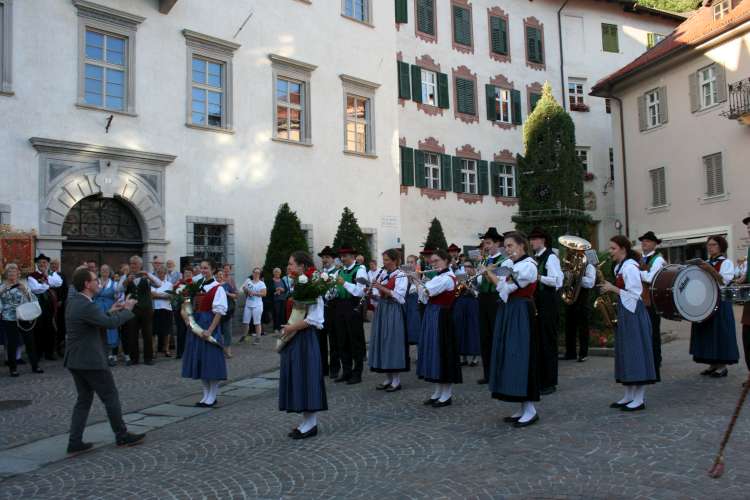 Bereits im Vorfeld hatte Peter Kocévar den ausdrücklichen Wunsch geäußert, dass seine Primiz ein Fest für die ganze Stadt sein sollte. Das wurde es…! Flotte Märsche der Musikkapelle Meran sowie ein „Ständchen für Peter“ des Jugendchor Prisma am Oberen Pfarrplatz sorgten für ausgelassene Stimmung. Stunden zuvor zauberten viele helfende Hände aus den Pfarrvereinen (kfb-Frauen, Senioren, PGR….) unter Anleitung des Spitzenkochs Luis Winkler kulinarische Köstlichkeiten, dekorierten den Nikolaussaal und sorgten für das Wohl der vielen Mitfeiernden.