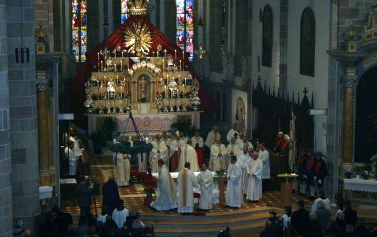 Im bis auf den letzten Platz besetzten Gotteshaus konzelebrierten fünfzehn Priester mit dem Diözesanbischof den Festgottesdienst, der vom Stadtpfarrchor St. Nikolaus mit der “Festmesse” von I. Reimann musikalisch gestaltet wurde.